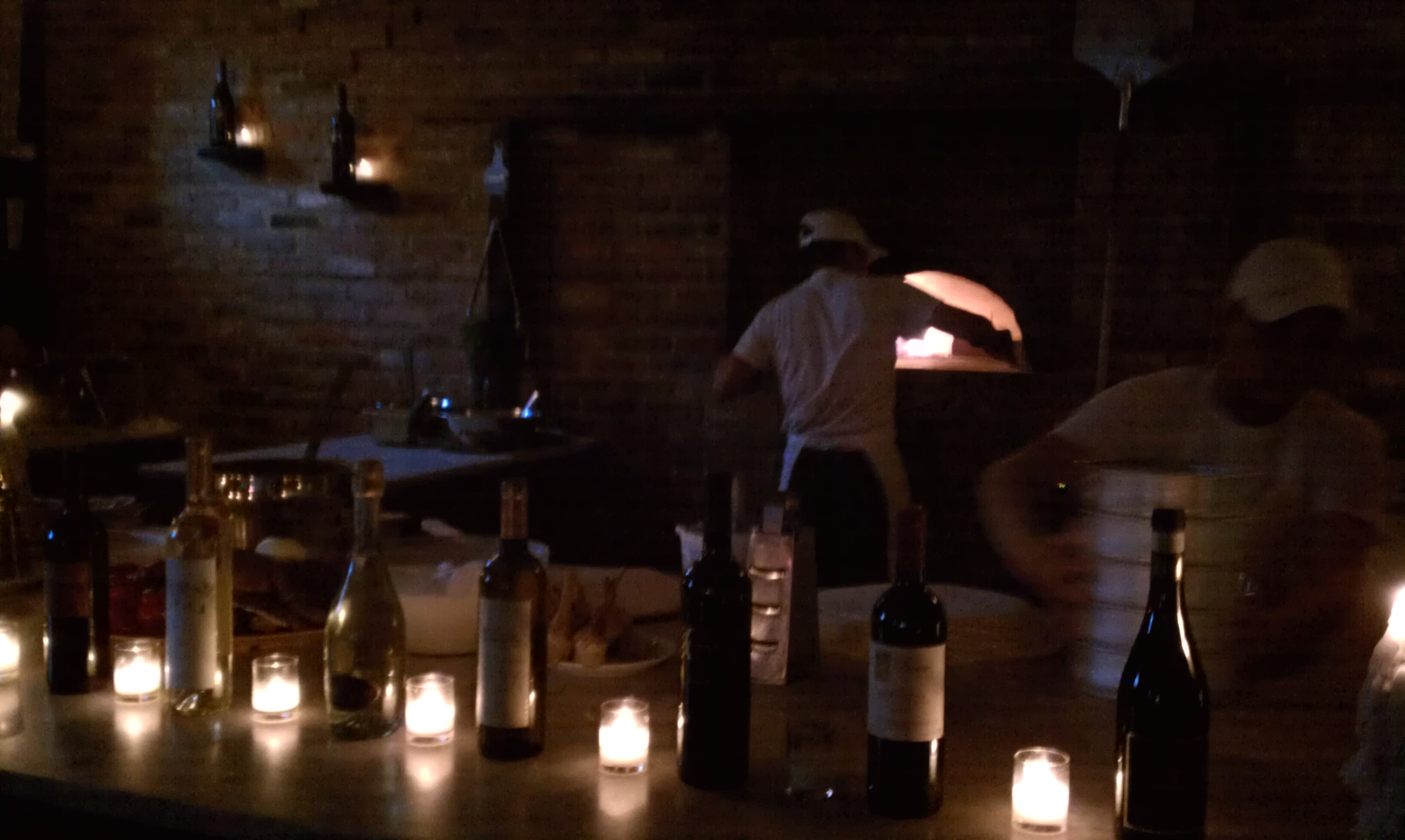 The ambiance evokes a happy, comfort food feeling. The small, dark, brick walled room and decorated with candles had a bar / kitchen outpost in the back housing the brick oven. It was a comfortable and warm setting. If the same pie was served in a different setting, I don’t think I would have liked it as much.