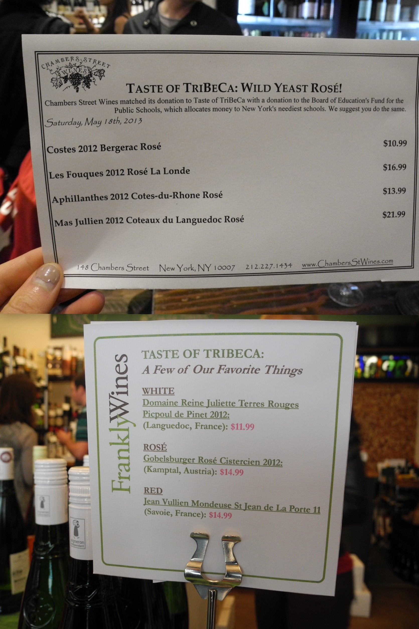 entertainment on hand. Also participating in the Taste of Tribeca were 4 local wine shops that held wine tastings all day. Together, my husband and I mapped out our day;
